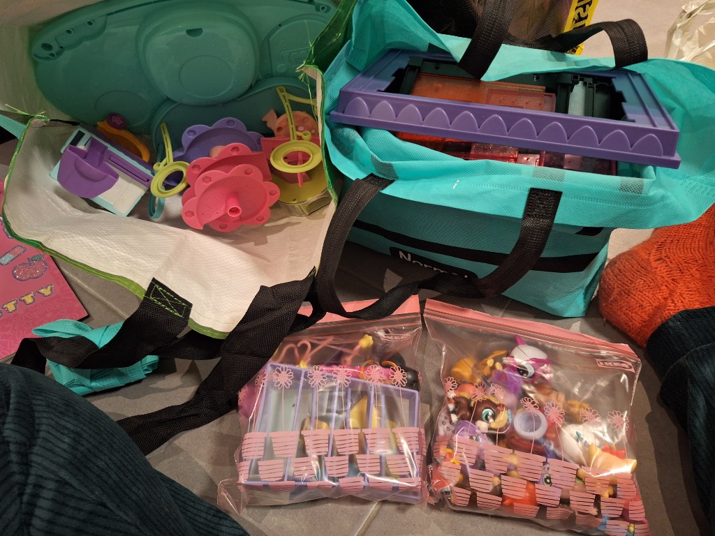 Normal kassi, jossa taloja, kielo kassi, jossa 2 mingrippiä hahmot ja tarvikkeet, sekä yksi leikkimaailman. Kaikki tavarat yhteensä 70e