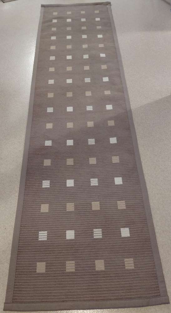 Matto on kaksipuolinen ja kantattu. Kuvista näette kuviot (kuvat on otettu kapeammasta matosta). Matto on pesulan jäljiltä, se on ylipäätään ollut vain muutaman kerran lattialla, ei tahroja.
