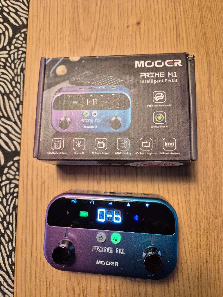 Mooer Prime M1 Multiefekti kitaralle ja bassolle Paljon erilaisia efektejä, vahvistinmallinnuksia ja kaiutinsimulointeja. Rumpukone ja looper. Bluetooth. Ladattava akku jopa viiden tunnin kestolla. USB C. Ilmainen Mooer Prime -sovellus Android ja IOS -laitteille.