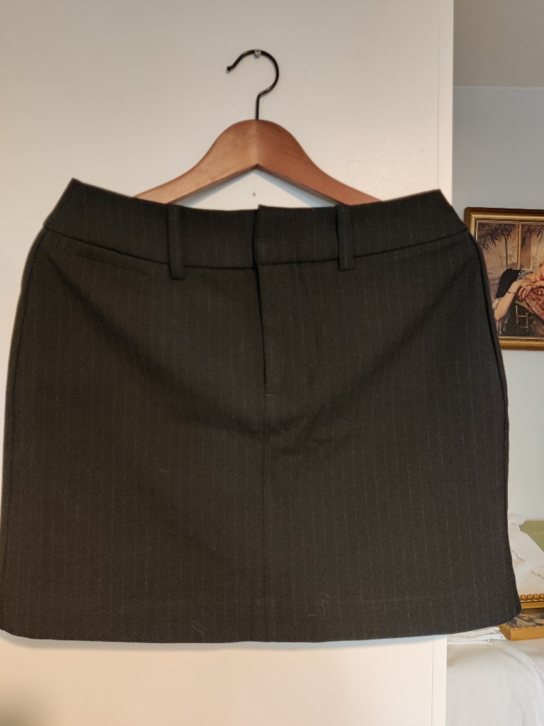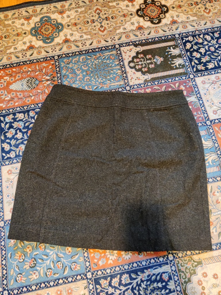 tummanharmaa villahame H&M merkkiä koossa 38. Takana vetoketju ja napit. Lyhyt pituus. Vähän käytetty mutta hyväkuntoinen.