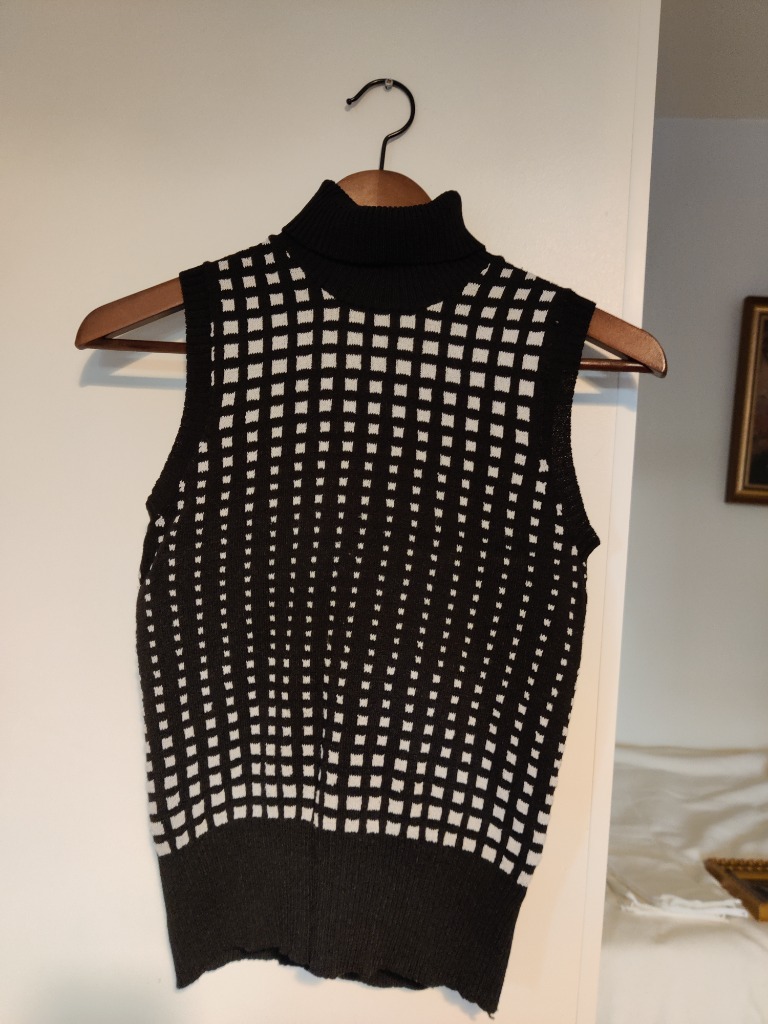 mustavalko ruudullinen poolo 'liivi'. Elisabeth Shannon merkkiä koossa L. Hyvässä kunnossa oleva. Selkä täysmusta.