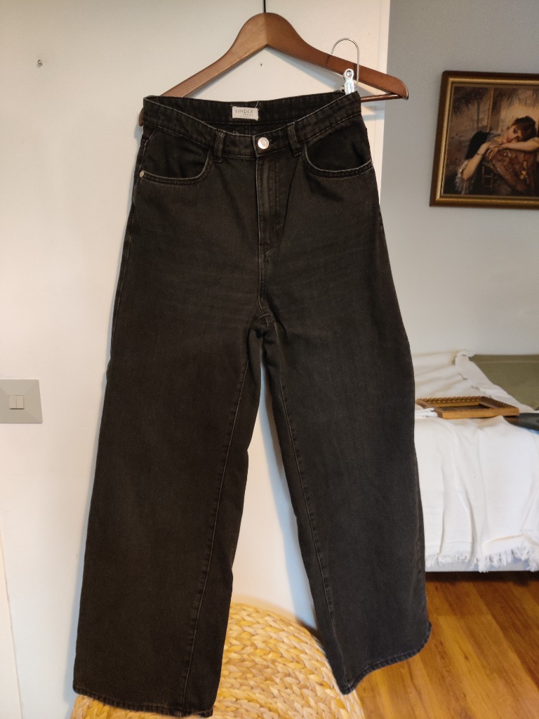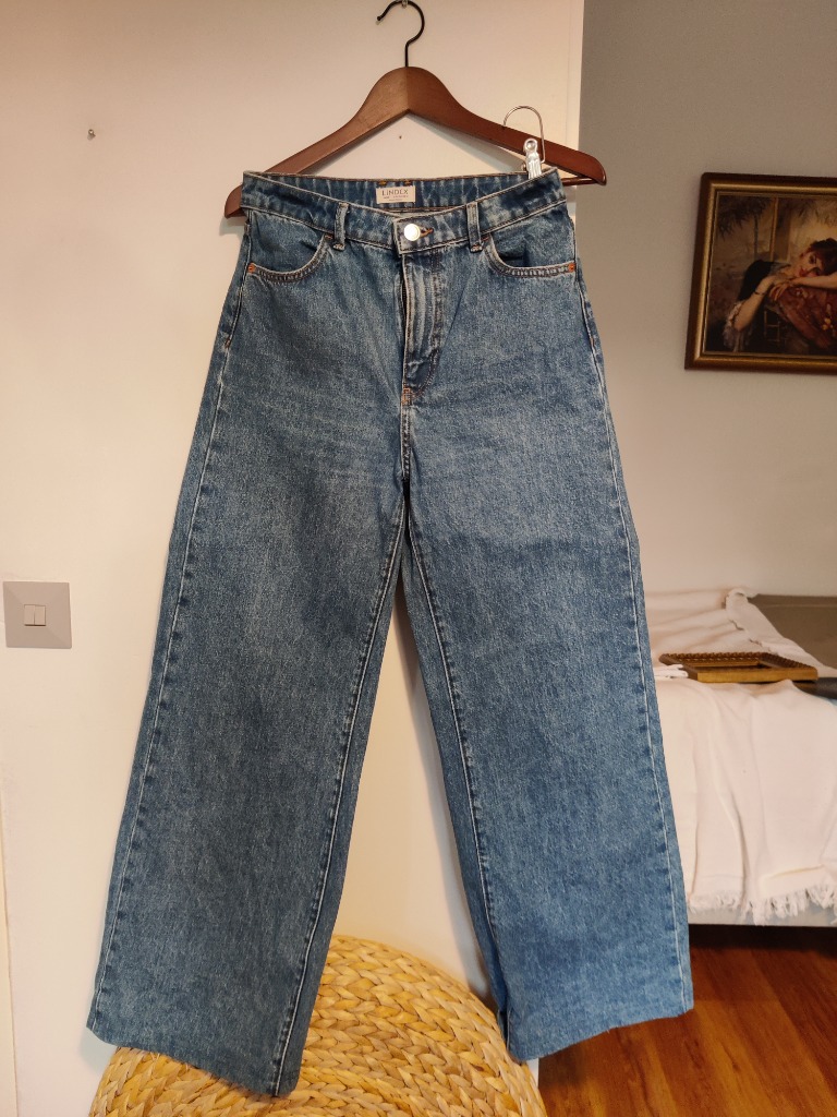 Siniset Lindexin Jackie farkut, koko 38. Käytetyt mutta hyväkuntoiset. Pituus lyhennetty 165 senttiselle mutta siisti ja huomaamaton jälki.