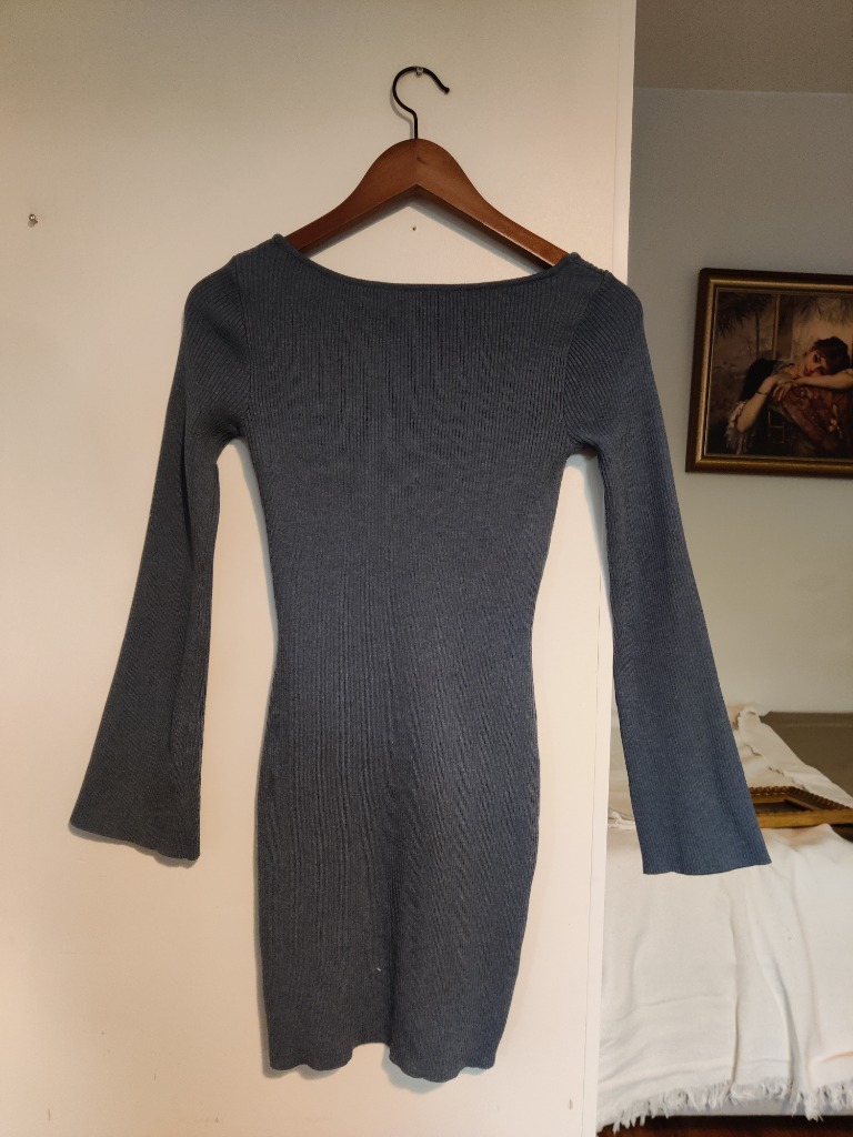 sininen neulemekko venepäätiellä ja kevyesti levenevillä hihoilla. H&M merkkiä koossa S. Pari kertaa käytetty ja uudenveroinen. Selkä hieman avonainen.