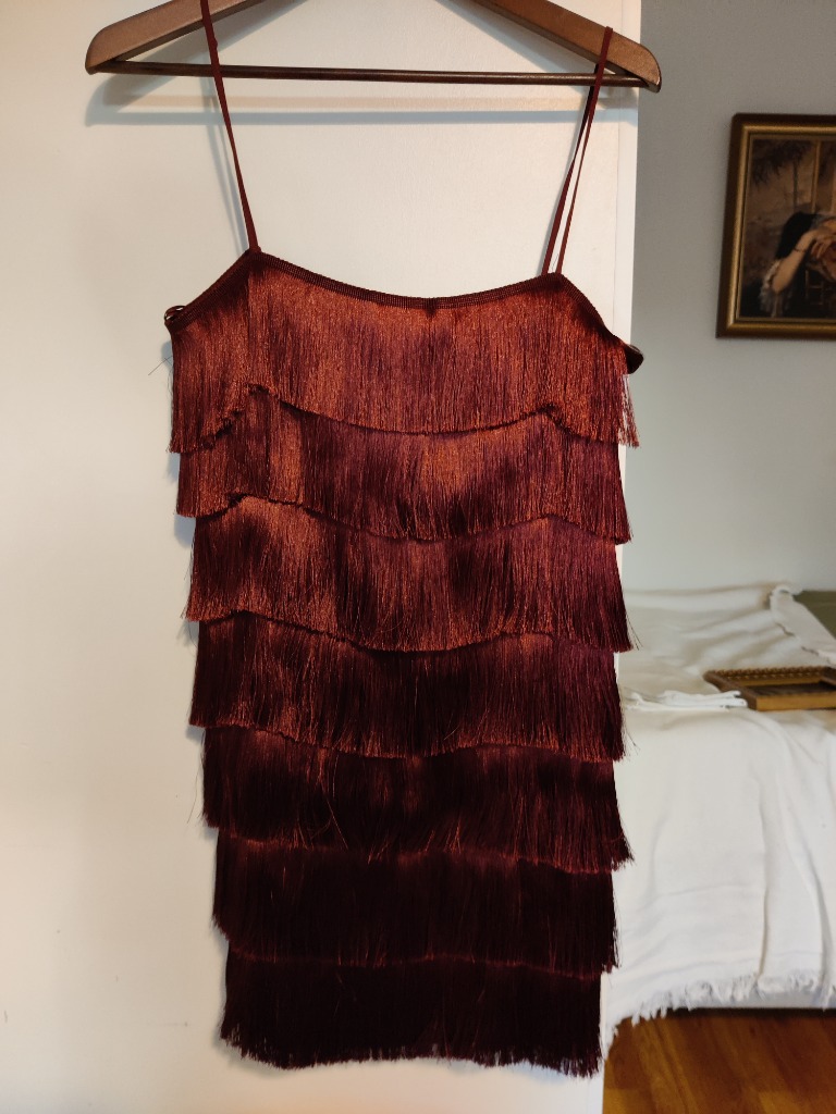 viininpunainen hapsumekko, avonainen nyöriselkä. Bershka merkkiä, koko M. Käyttämätön ja laput tallella.