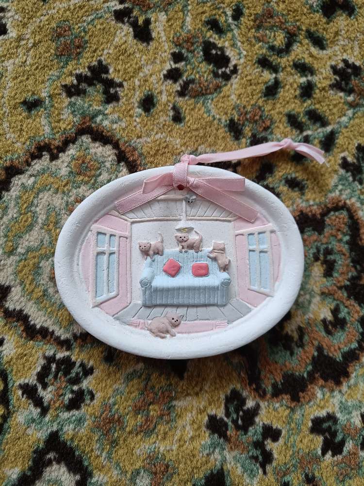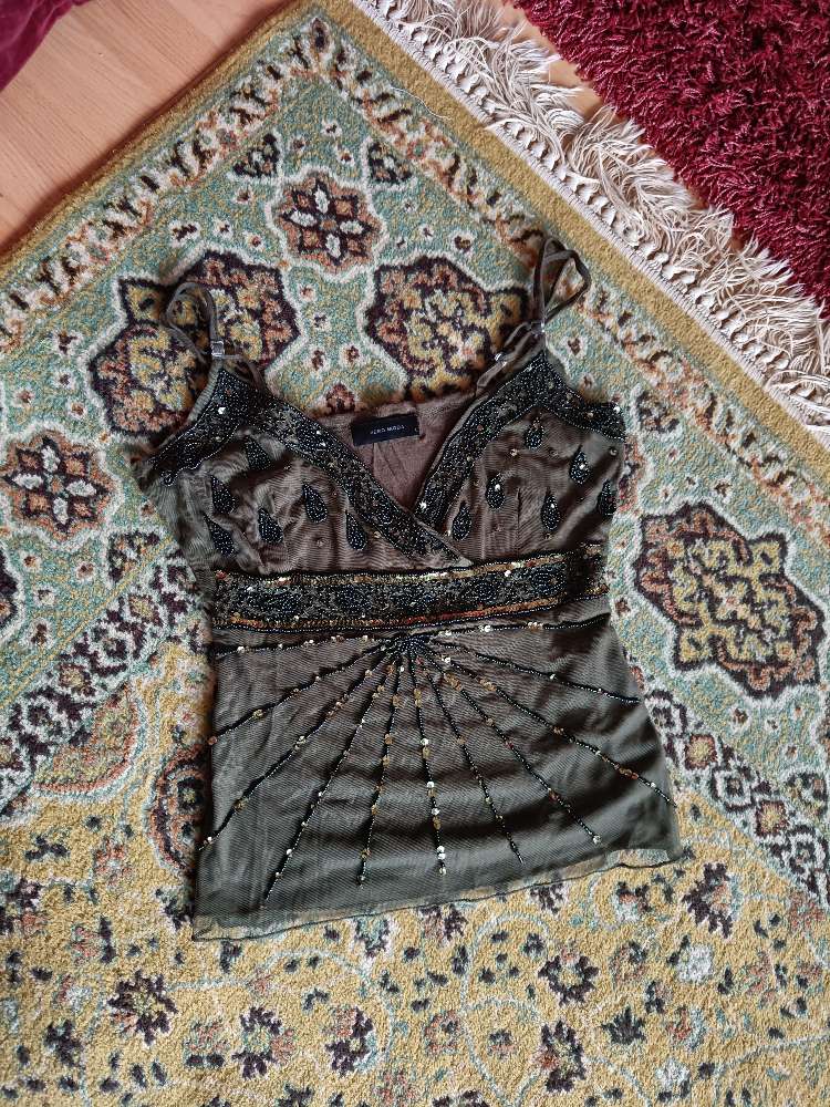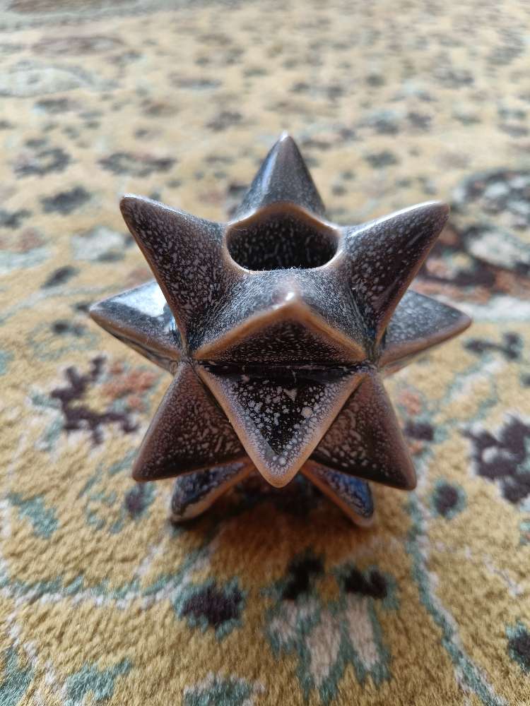 Osa kiiltävästä koristeista pudonnut pois, mutta siisti yleisilme.