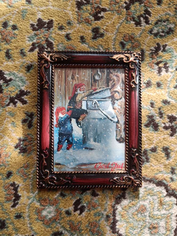 Osa kiiltävästä koristeista pudonnut pois, mutta siisti yleisilme.