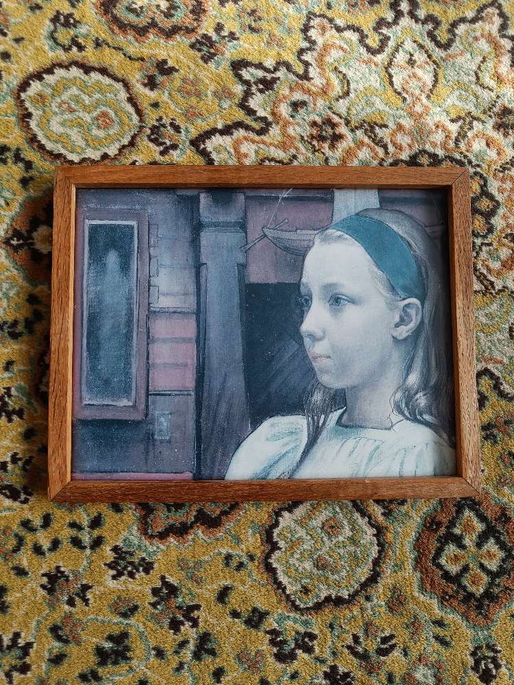 Yläreunassa tumma kulumajälki, jonkin verran nyppyisyyttä.